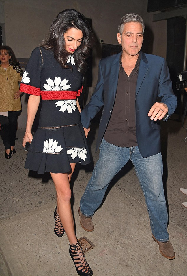 Η 37χρονη δικηγόρος, με καταγωγή από το Λίβανο, έλαβε πάλι τα εύσημα για την κομψή της εμφάνιση, επιλέγοντας να φορέσει ένα μίνι φόρεμα, με ευμεγέθη λουλούδια και κομψή μέση.