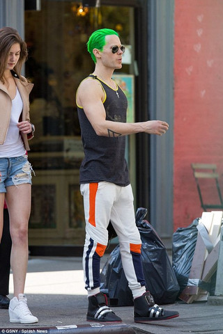 Ο 43χρονος ηθοποιός και frontman του γκρουπ «30 Seconds To Mars» εθεάθη να κινείται στους δρόμους του Σόχο στη Νέα Υόρκη, με πράσινα μαλλιά, όπως επιτάσσει ο ρόλος.
