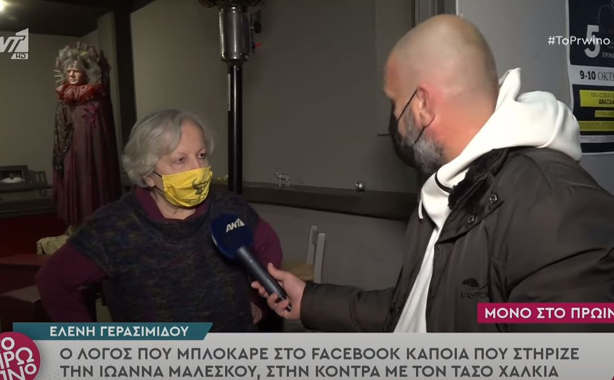 Και την Ελένη Γερασιμίδου συνάντησε η κάμερα της εκπομπής «Πρωινό» και ζήτησε μεταξύ άλλων το σχόλιο της για την Ιωάννα Μαλέσκου. «Καλά κάνει η κοπέλα, ο καθένας εκεί που ετάχθη. Το κείμενό μου ήταν συναδελφική αλληλεγγύη. Θα της έλεγα να προσέχει και να σέβεται που έφαγαν τη ζωή τους σε μία δουλειά» είπε μεταξύ άλλων η ηθοποιός.