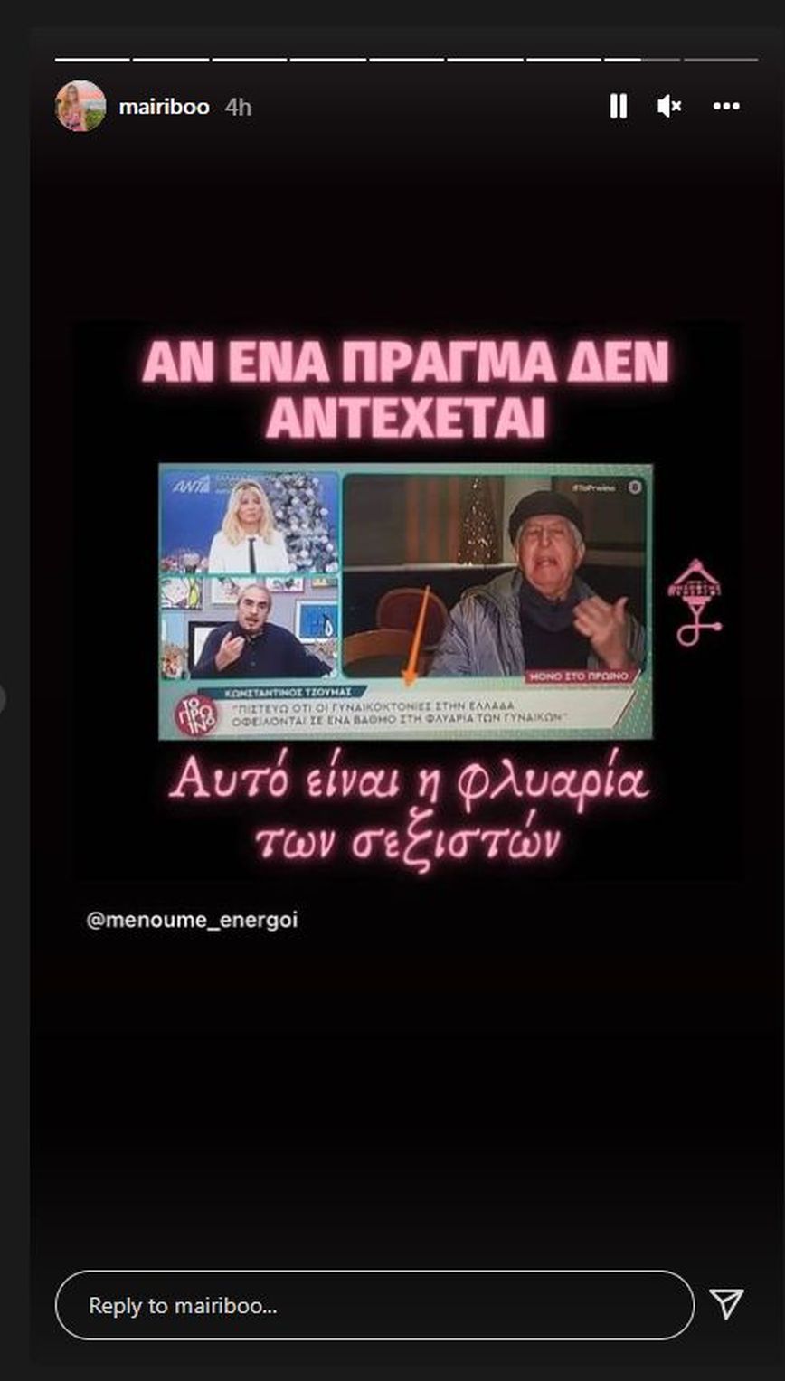 Η Μαίρη Συνατσάκη μέσω του προσωπικού της λογαριασμού στο Instagram πήρε θέση για το συγκεκριμένο θέμα.