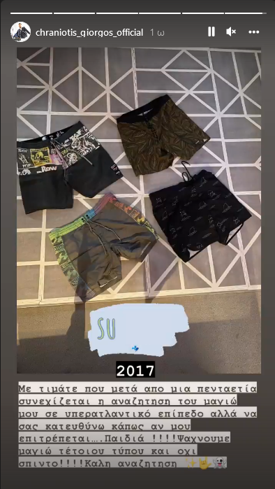 Παιδιά! Ψάχνουμε μαγιό τέτοιου τύπου και όχι σπίντο! Καλή αναζήτηση» έγραψε δείχνοντας την «κολεξιόν» από μαγιό-βερμούδες που φοράει.