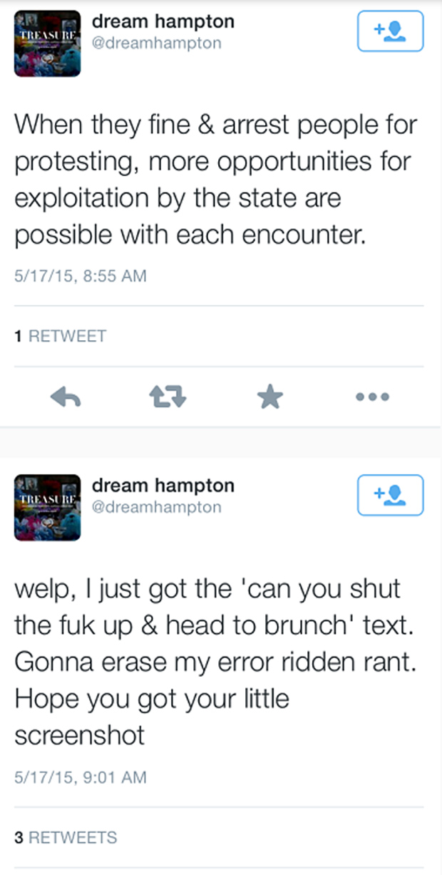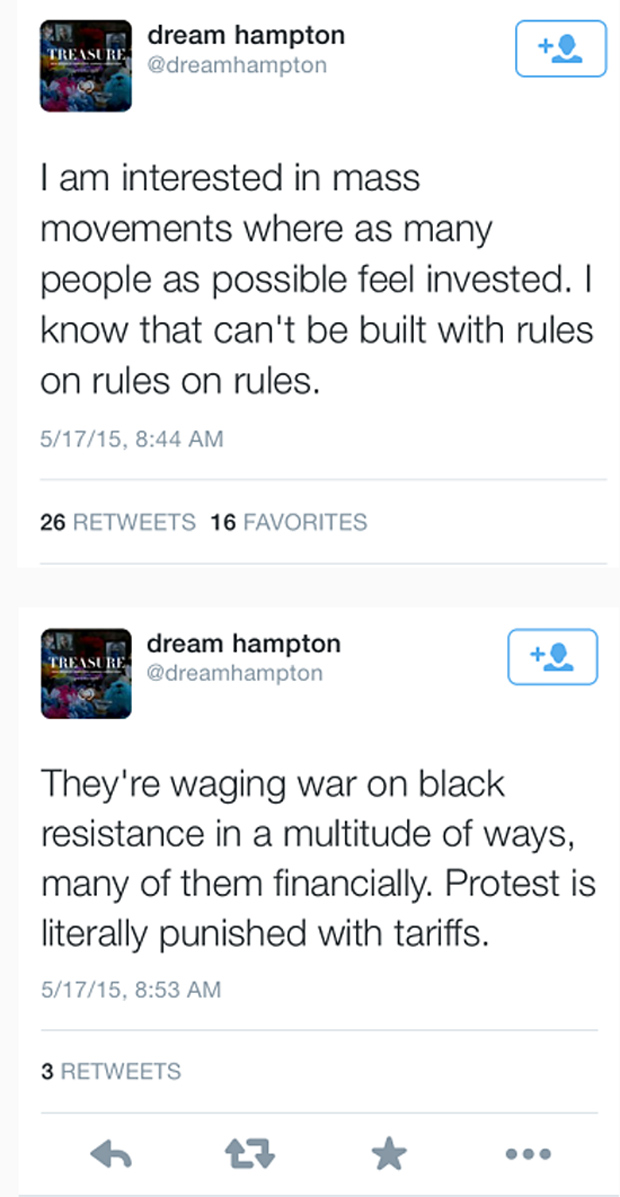 Η Ντριμ Χάμπτον, συγγραφέας και ακτιβίστρια η οποία είχε εργαστεί στα απομνημονεύματα του Jay-Z με τίτλο Decoded που είχαν εκδοθεί το 2010, προχώρησε σε αυτές τις αποκαλύψεις σε μια σειρά από μηνύματα που είχε αναρτήσει στο Twitter, τα οποία ωστόσο ταχύτατα σβήστηκαν, τα αναπαρήγαγε όμως το περιοδικό Complex.