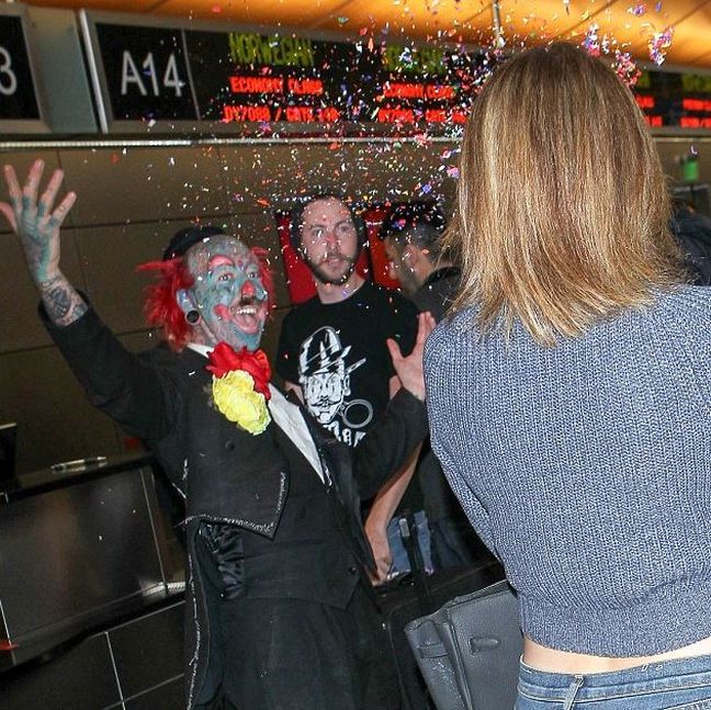 Απρόσμενη και κατ’ όπως φάνηκε από τις φωτογραφίες και το βίντεο, δυσάρεστη, ήταν η συνάντηση που είχε η Τζένιφερ Λόπεζ κατά την άφιξή της στο αεροδρόμιο του Λ.Α. Ένας άνδρας ντυμένος κλόουν την υποδέχθηκε πετώντας της κομφετί στα μαλλιά, πράγμα το οποίο η τραγουδίστρια ούτε την διασκέδασε ούτε την χαροποίησε ιδιαίτερα.