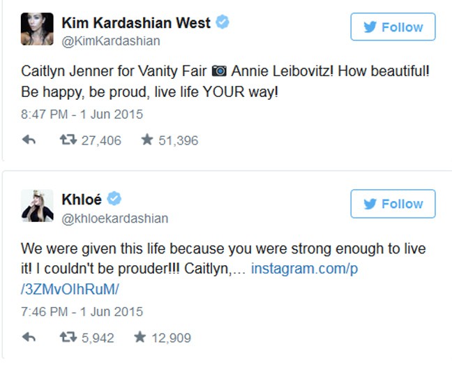 Η αποκάλυψη του αποτελεί «καυτό θέμα» στα social media και οι πρώτες που έσπευσαν να τη σχολιάσουν είναι οι κόρες του: η βιολογική κόρη του Kendall Jenner και οι θετές του κόρες Kim και Khloé Kardashian.