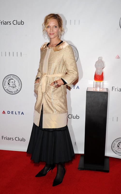 To New York Friars’ Club οργάνωσε μία εκδήλωση «roast» για τον Quentin Tarantino όπου φίλοι και γνωστοί του αστειεύτηκαν μαζί του.Φυσικά από την εκδήλωση δεν μπορούσε να λείπει η μούσα του καλλιτέχνη Ούμα Θέρμαν.