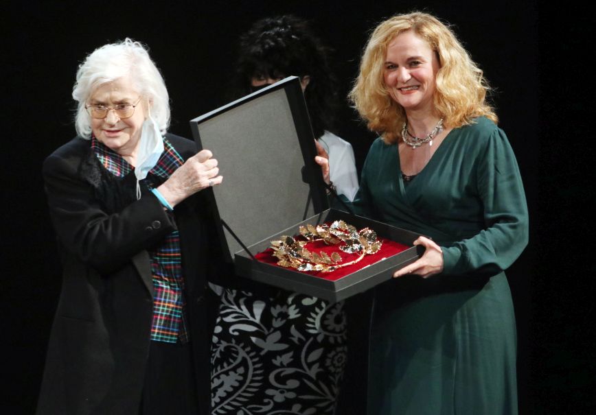 Μόλις, η 82χρονη Κατερίνα Χέλμη ανέβηκε στην σκηνή του θεάτρου «Ολυμπία», τα χειροκροτήματα έπεσαν «βροχή».