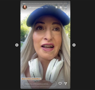 Όπως λέει σε μια σειρά από ιστορίες που ανέβασε η Ιωάννα Παλιοσπύρου χωρίς να φοράει μάσκα πρόκειται για ένα ειδικό κέντρο υδροθεραπείας. «Εδώ γίνονται θεραπείες με ιαματικά νερά που κάνουν καλό στα εγκαύματα και τις δερματοπάθειες» επεσήμανε.