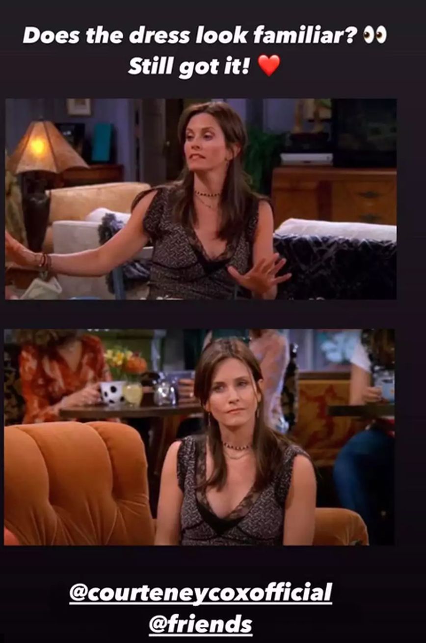 «Σας θυμίζει κάτι το φόρεμα; Ακόμα το έχω! ❤️@courteneycoxofficial @friends», έγραψε η Άνιστον.