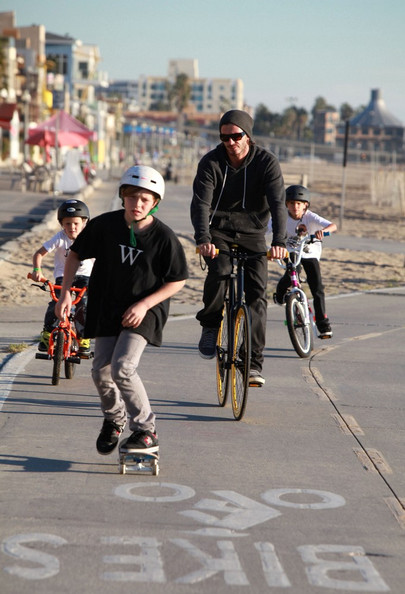 Εκμεταλλευόμενος τον καλό καιρό που θύμιζε καλοκαίρι, ο Ντέιβιντ Μπέκαμ πήρε τα τρία παιδιά του Μπρούκλην, Ρομέο και Κρούζ, για ποδήλατο και πατίνια στην παραλία Venice της Καλιφόρνιας.