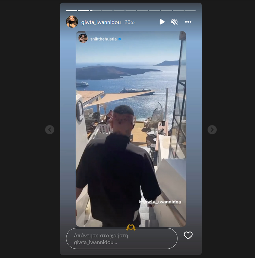 Η σύντροφος του Snik θέλησε να απαντήσει χιουμοριστικά στα όσα ειπώθηκαν πως ο τράπερ σε βίντεο την είπε «πατσαβούρα» και έτσι ανέβασε στιγμιότυπο από τις κοινές τους διακοπές στη Σαντορίνη.