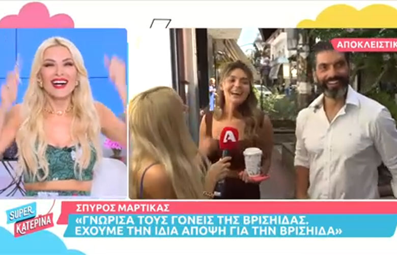 Ο Σπύρος Μαρτίκας, σήμερα και λίγο πριν τον μεγάλο τελικό του Survivor ξενάγησε την αγαπημένη του Βρισηίδα Ανδριώτου στο φαρμακείο του. Εκεί τους συνάντησε η κάμερα της εκπομπής Super Κατερίνα όπου δεν αρνήθηκαν να κάνουν δηλώσεις και να μιλήσουν για την σχέση τους αλλά και την Ιωάννα Τούνη.