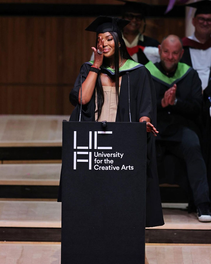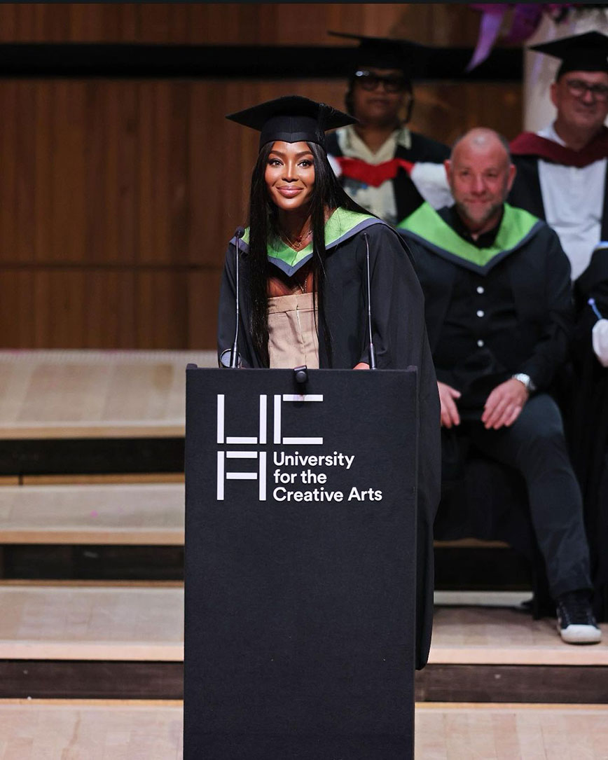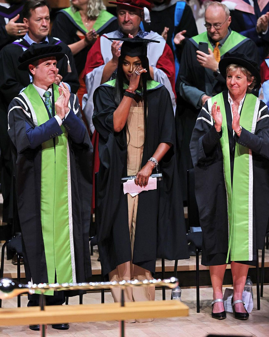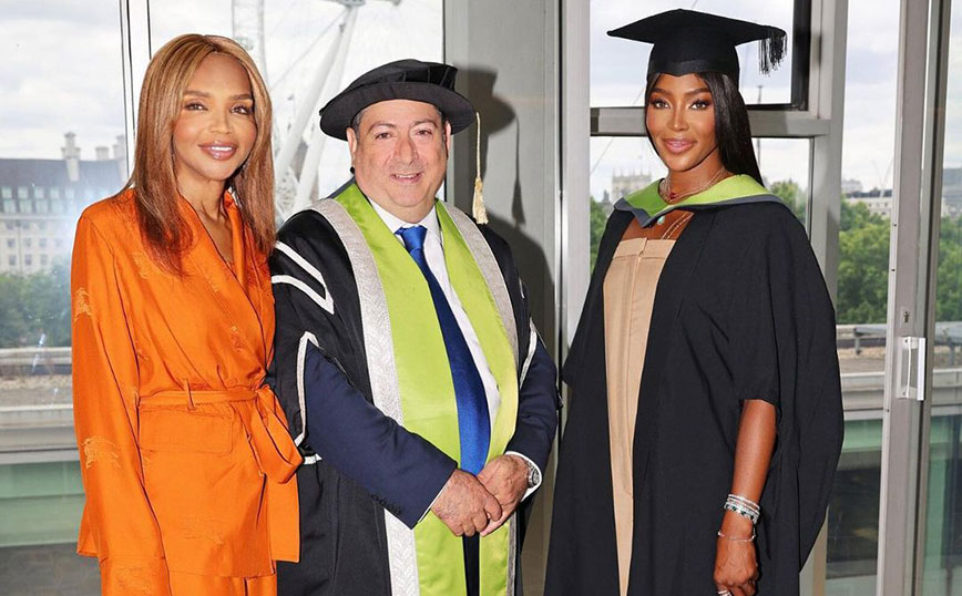 Επίτιμη διδάκτωρ από το UCA (University for the Creative Arts), με αφορμή τον αντίκτυπο της στην παγκόσμια μόδα αναγορεύτηκε η Ναόμι Κάμπελ.