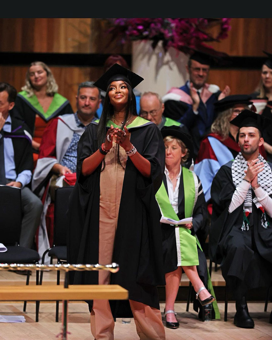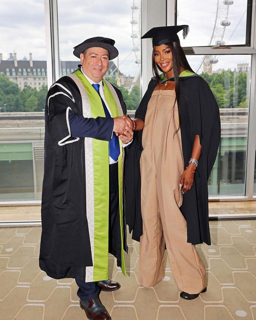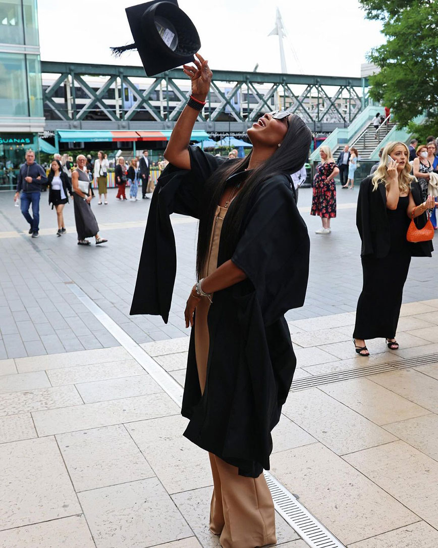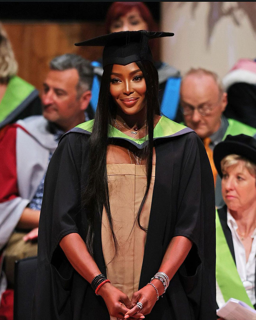 Η Ναόμι Κάμπελ, μοιράστηκε με τους διαδικτυακούς της φίλους μέσω του προσωπικού της λογαριασμού στο Instagram, μια σειρά φωτογραφιών από την τόσο σημαντική μέρα και έσπευσε να δώσει μια συμβουλή στους φοιτητές του Πανεπιστημίου.