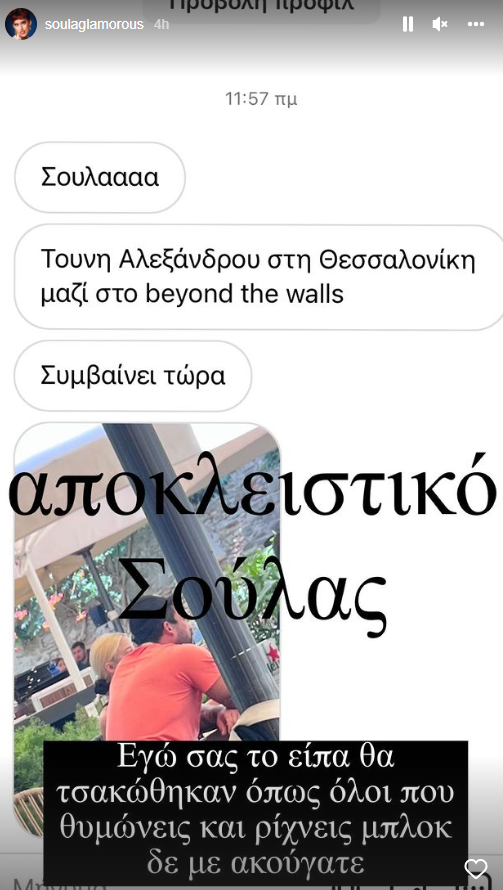 Σήμερα, ο λογαριασμός της Soulaglamorous στο instagram δημοσίευσε μία φωτογραφία η οποία φέρεται να είναι σημερινή και δείχνει την Ιωάννα Τούνη δίπλα – δίπλα σε καφετέρια της Θεσσαλονίκης με τον Δημήτρη Αλεξάνδρου.
