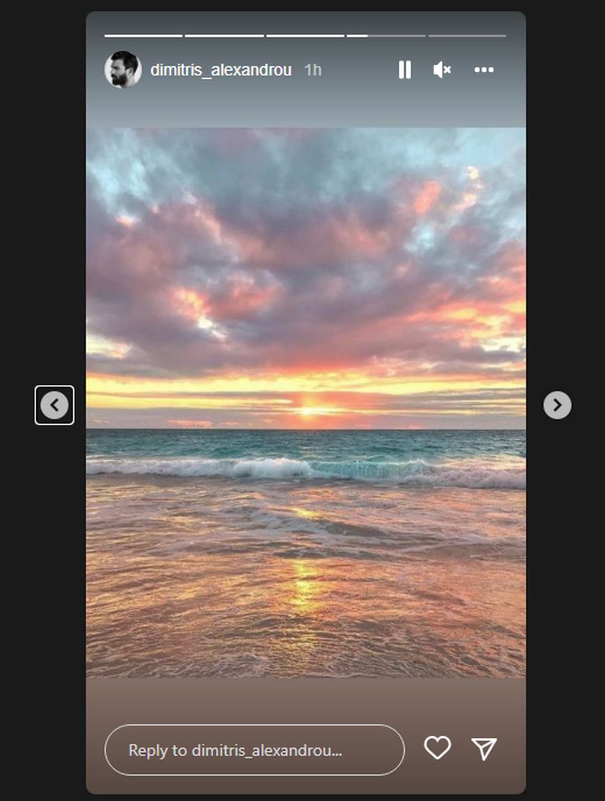 Λίγο μετά την ανακοίνωση της Ιωάννας Τούνη, ο Δημήτρης Αλεξάνδρου δημοσίευσε ένα story στον προσωπικό του λογαριασμό στο Instagram του με ένα όμορφο τοπίο και ένα βίντεο με τον σκύλο του, χωρίς να αναφερθεί στην σύντροφό του και στην εγκυμοσύνη της.