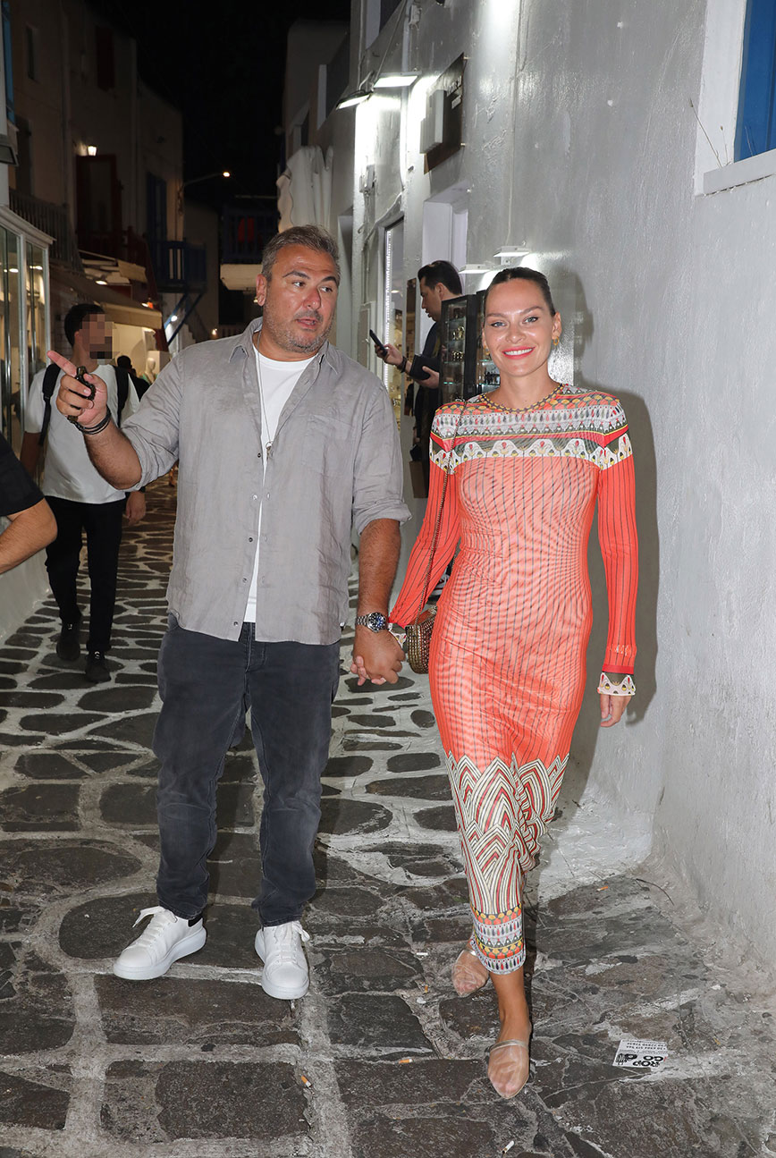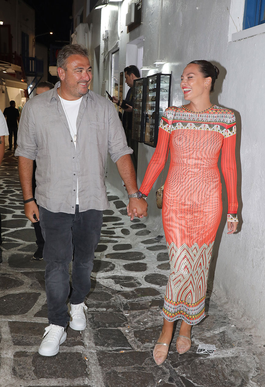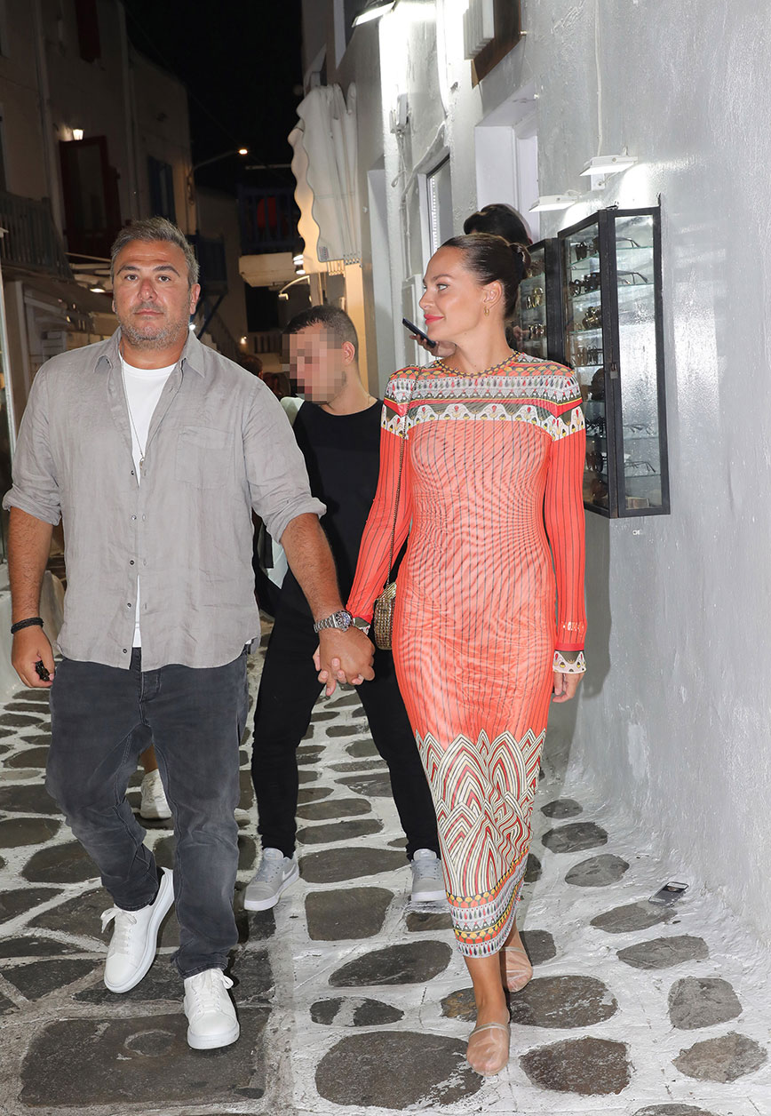 Ο φωτογραφικός φακός απαθανάτισε τον τραγουδιστή και τη σύζυγό του κατά τη διάρκεια βόλτας τους στα Ματογιάννια, να προχωρούν κρατώντας ο ένας το χέρι του άλλου.