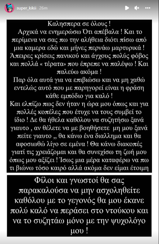 Η ανακοίνωση της Super Κικής στο Instagram: «Καλησπέρα σε όλους!