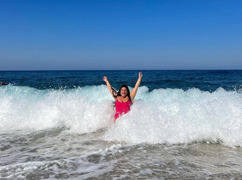 Σε αυτές την βλέπουμε να… παλεύει, ενδεχομένως και να παίζει αφού ποζάρει γεμάτη χαρά στα κύματα, κάνοντας χορευτικές κινήσεις, έχοντας «υιοθετήσει» και μια μεγάλη αλλαγή στο look της και συγκεκριμένα στα μαλλιά της όπου είναι φτιαγμένα με πολλά κοτσιδάκια ράστα, αγαπημένη καλοκαιρινή επιλογή πολλών γυναικών.