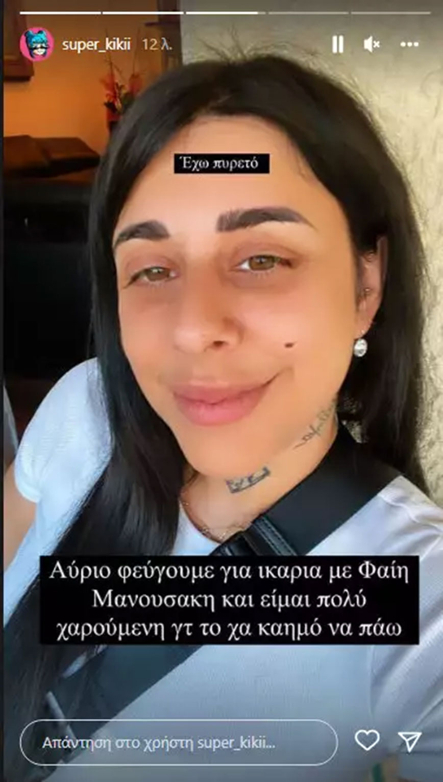 Η γνωστή instagrammer ετοίμασε βαλίτσες για Ικαρία και με stories που έκανε στο Instagram, ανέφερε ότι «αύριο φεύγουμε Ικαρία με τη Φαίη Μανουσάκη και είμαι πολύ χαρούμενη γιατί το’ χα καημό να πάω».