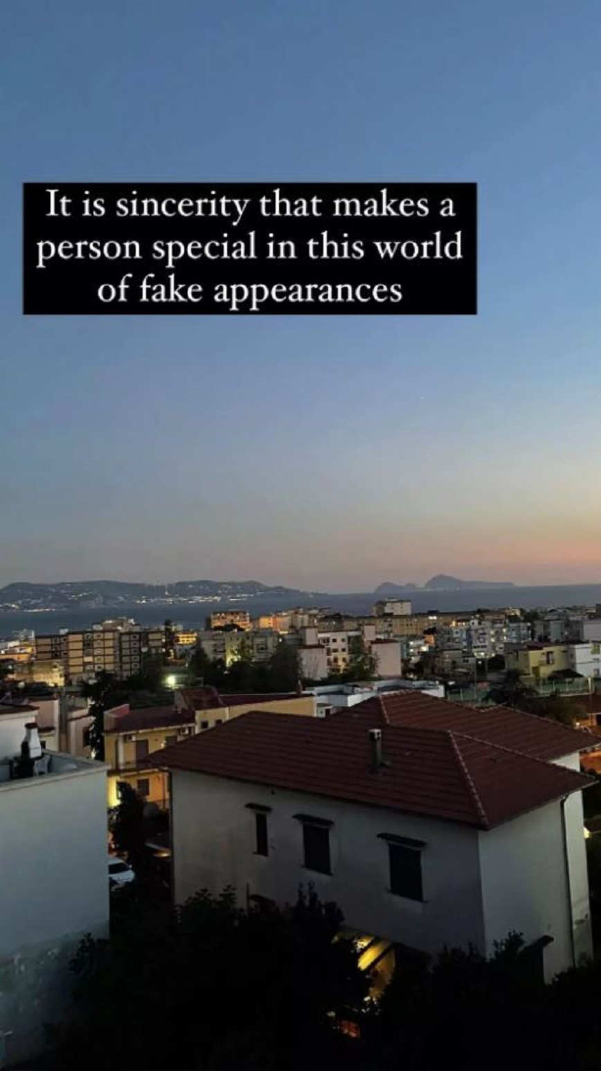 Συγκεκριμένα, το βράδυ της Δευτέρας (1 /8) ανέβασε ένα story στο Instagram, όπου έγραψε το εξής, σε μία φωτογραφία που απαθανάτιζε τον ουρανό και τη θάλασσα: