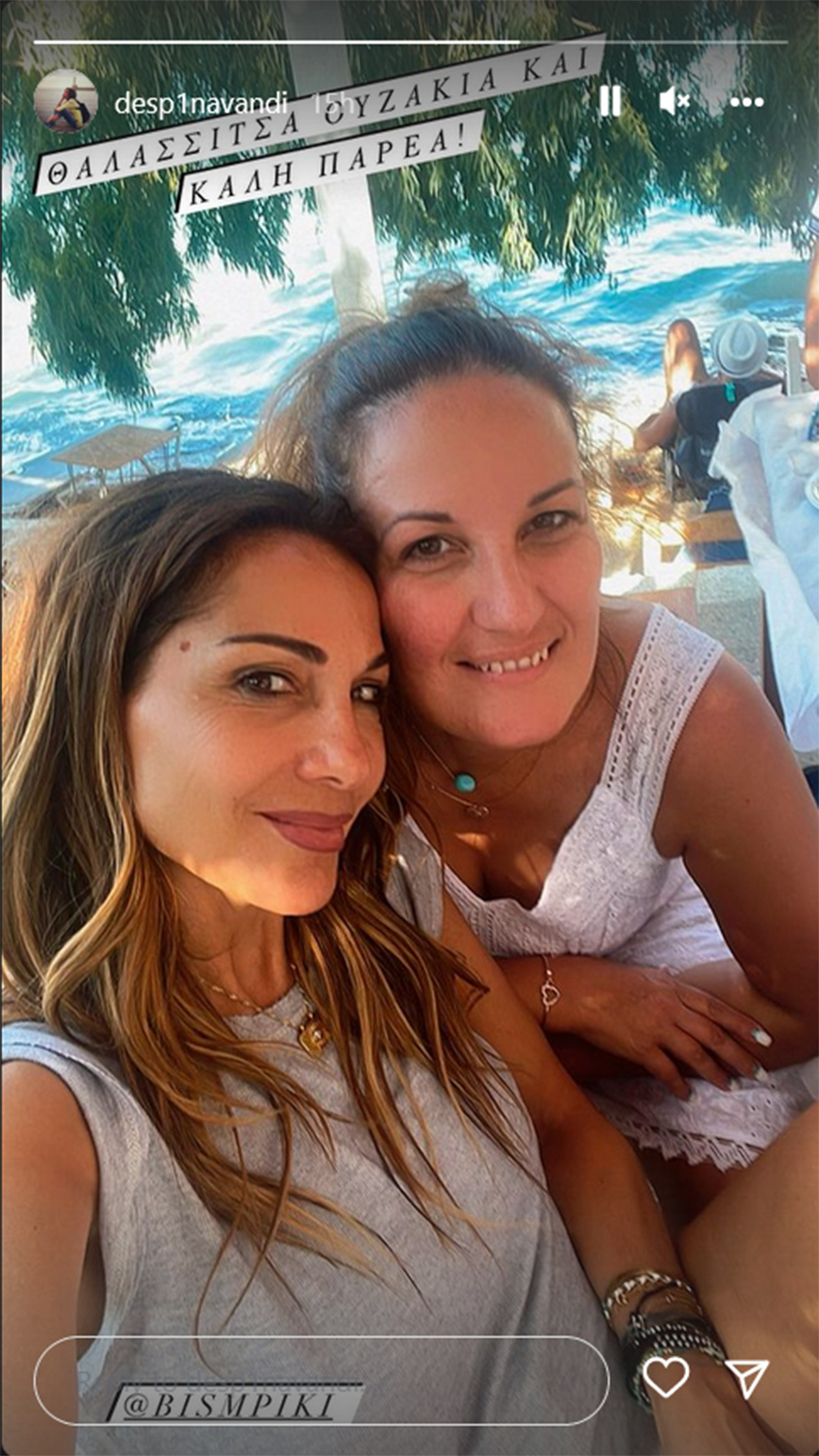Δίπλα στην αδερφή του αγαπημένου της Βασίλη Μπισμπίκη ποζάρει η Δέσποινα Βανδή σε φωτογραφία που ανέβασε στον προσωπικό της λογαριασμό στο Instagram.