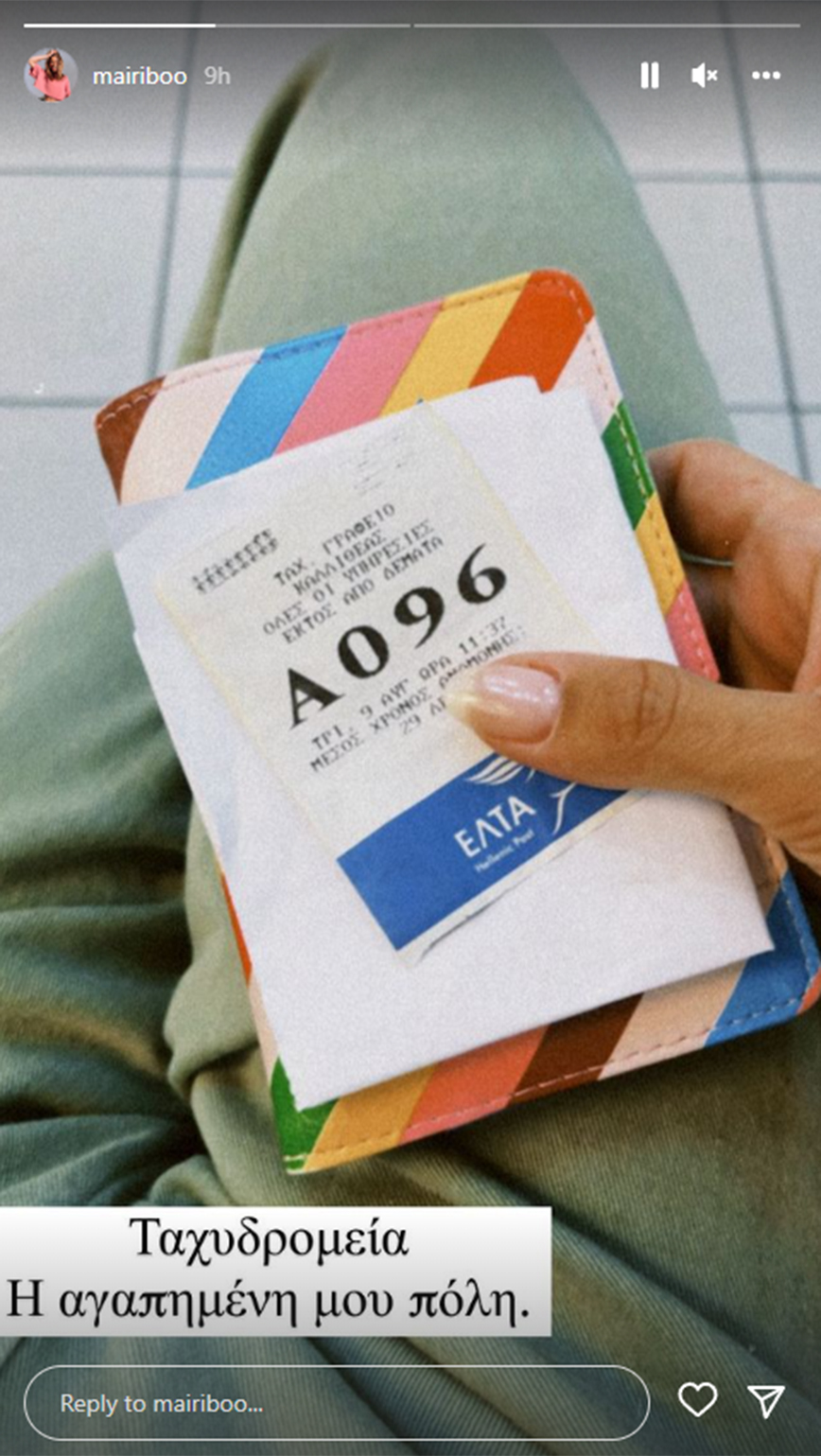 Στη λεζάντα που συνόδευε τη φωτογραφία της, η Μαίρη Συνατσάκη έγραψε: «Ταχυδρομεία, η αγαπημένη μου πόλη».