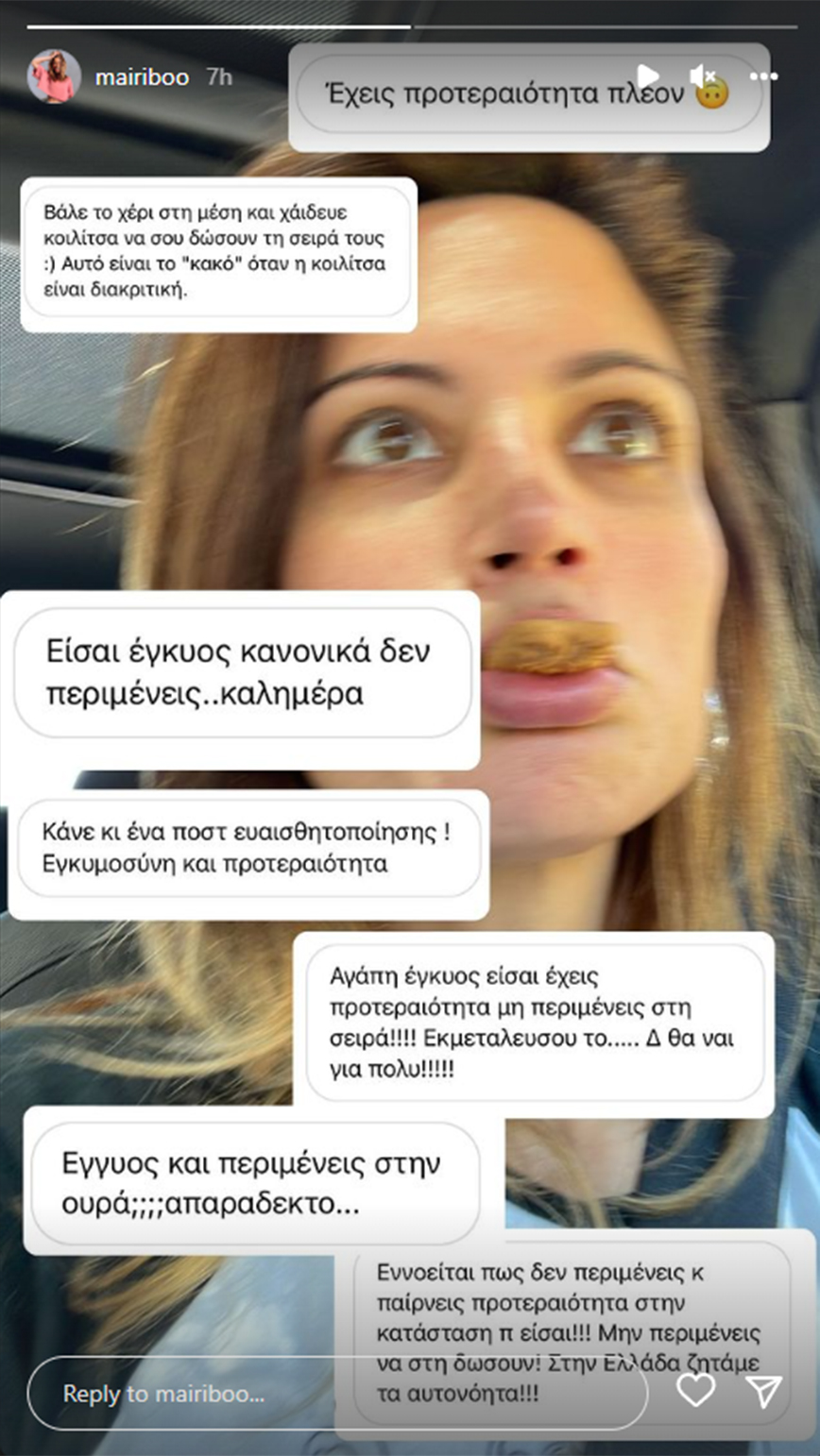 «Είσαι έγκυος, κανονικά δεν περιμένεις», «Έγκυος και περιμένεις στην ουρά; Απαράδεκτο», «Έγκυος είσαι έχεις προτεραιότητα, μην περιμένεις στη σειρά», ήταν μερικά μόνο από τα μηνύματα που δέχτηκε η Μαίρη Συνατσάκη.