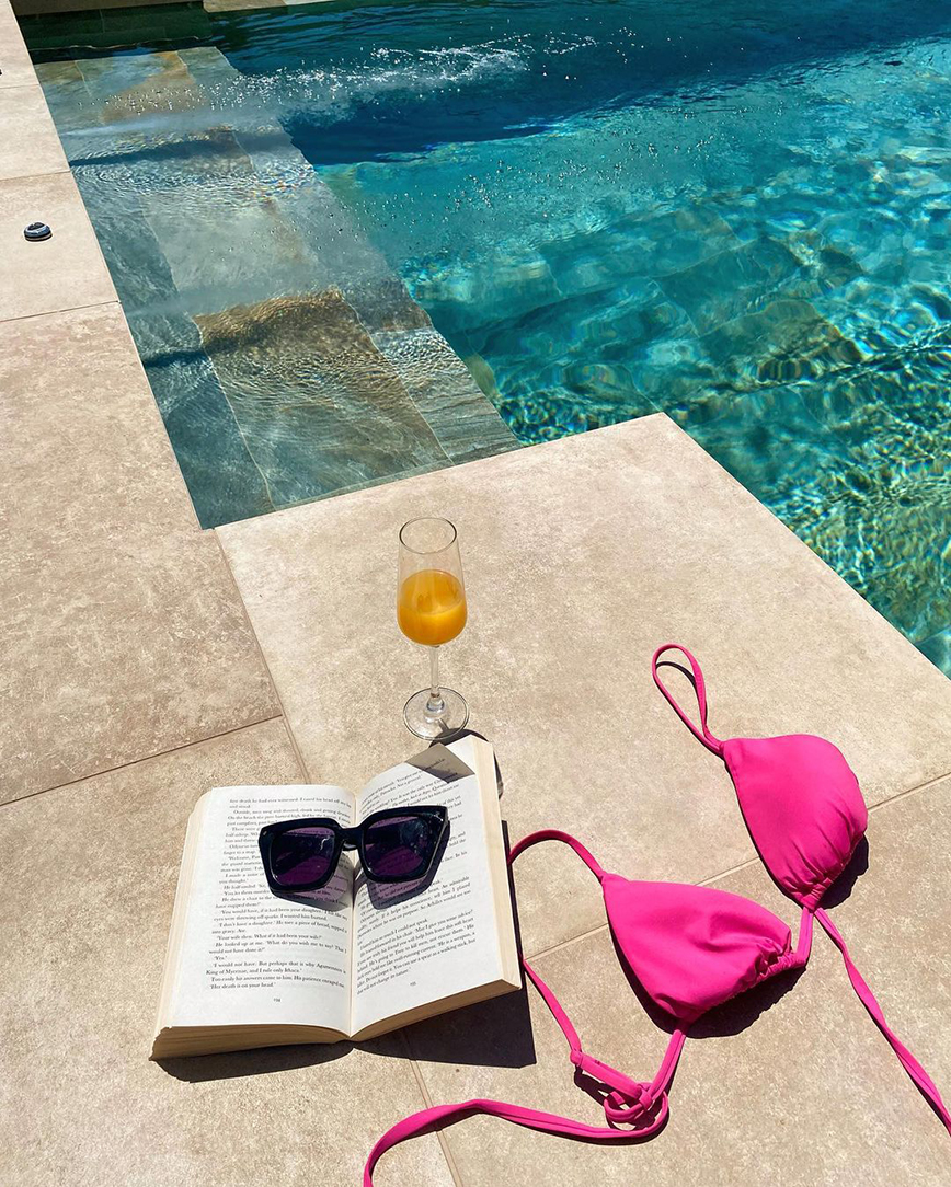 «Isn’t happy hour anytime?» έγραψε στη δημοσίευσή της, όπου ποζάρει με το μπικίνι της και βγάζει το βιβλίο της φωτογραφία μπροστά από την πισίνα.