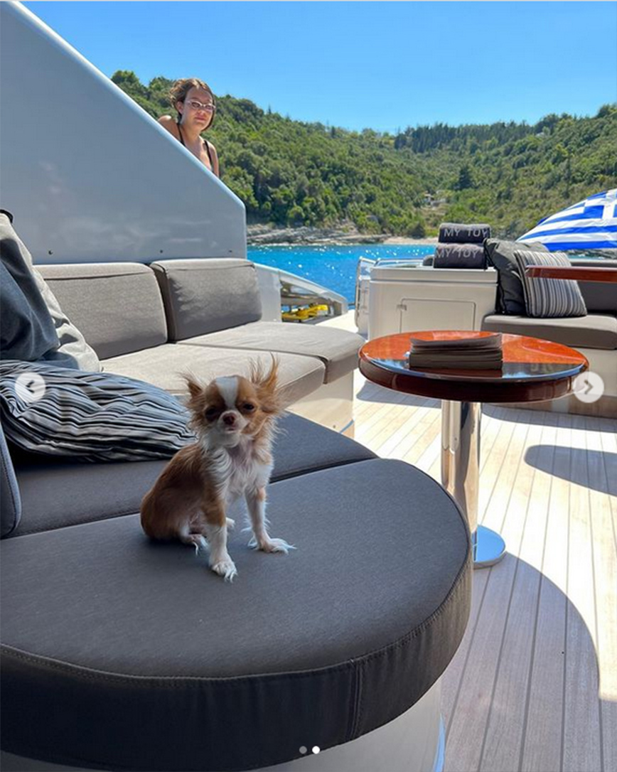 Η ίδια αναρτά συχνά στιγμιότυπα από τις διακοπές της στη χώρα μας και αυτή τη φορά επέλεξε δύο φωτογραφίες: μία με την ίδια πάνω στο γιο και μία με τον τετράποδο φίλο της, τον Πιλάφ.
