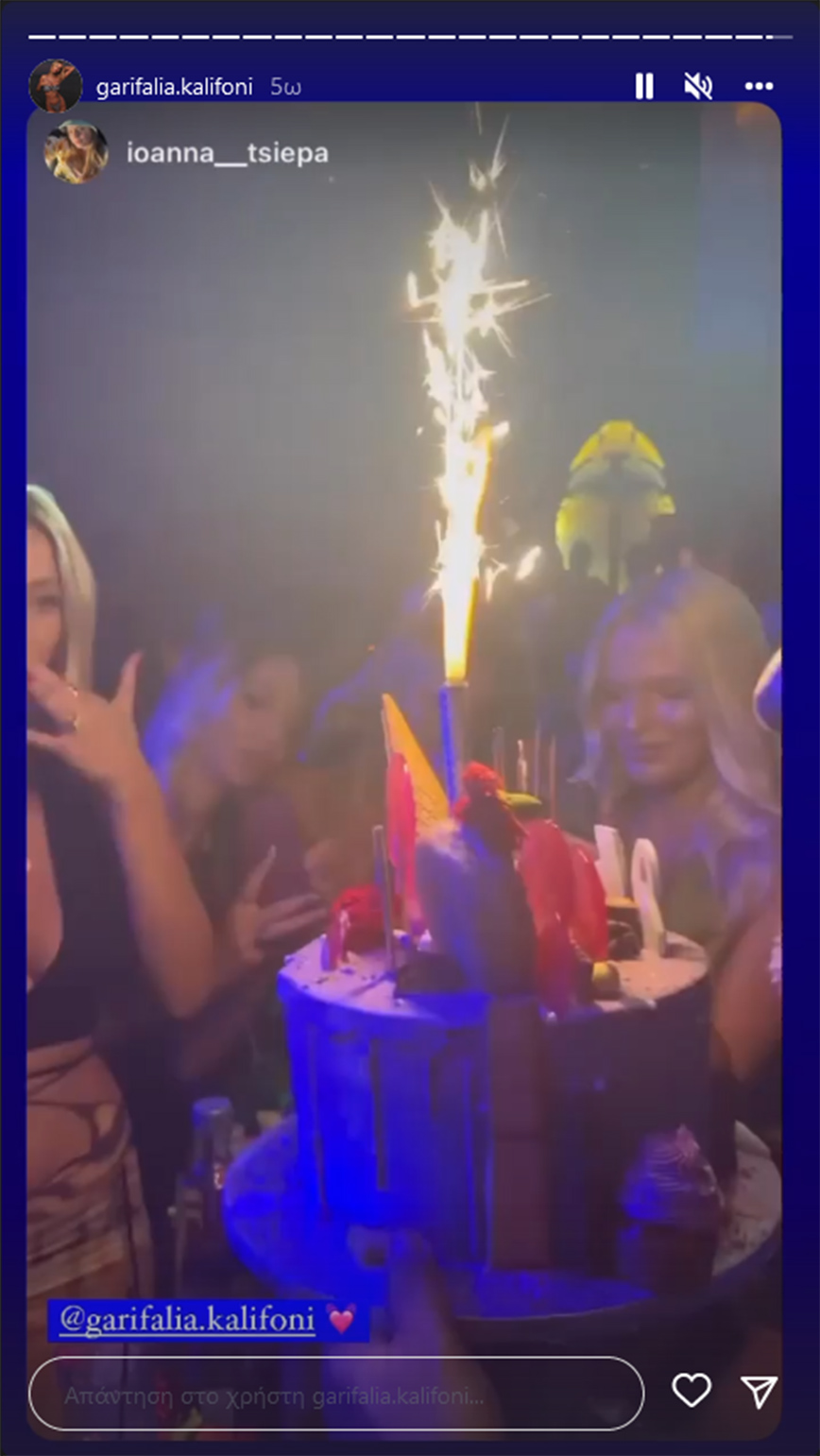 Το μοντέλο αποφάσισε να γιορτάσει στη συναυλία που έδωσαν οι Μέλιsses στην Ζάκυνθο και όπως φαίνεται στο βίντεο, ο Χρήστος Μάστορας τραγούδησε το γενέθλιο τραγούδι στο μοντέλο, το οποίο έσβησε μια εντυπωσιακή τούρτα.