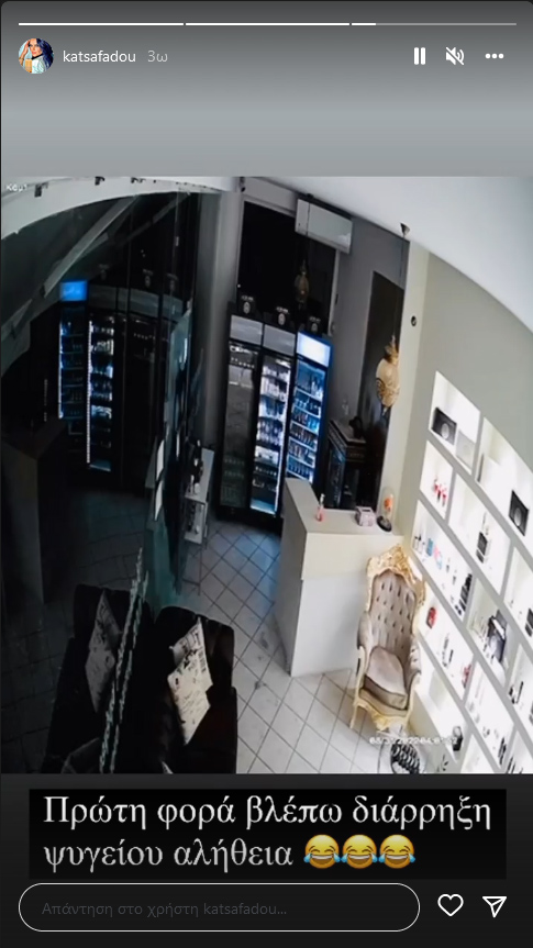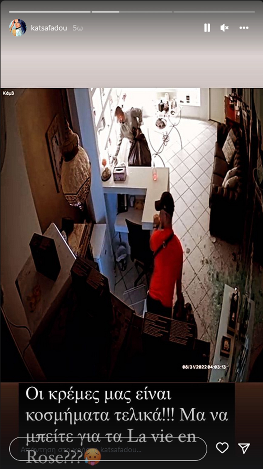 Σε άλλο story, δημοσίευσε μια εικόνα από τη δράση των κλεφτών μέσα στο μαγαζί της, όπου φαίνεται ξεκάθαρα να παίρνουν κρέμες από τις βιτρίνες, αλλά και να ψάχνουν για χρήματα.