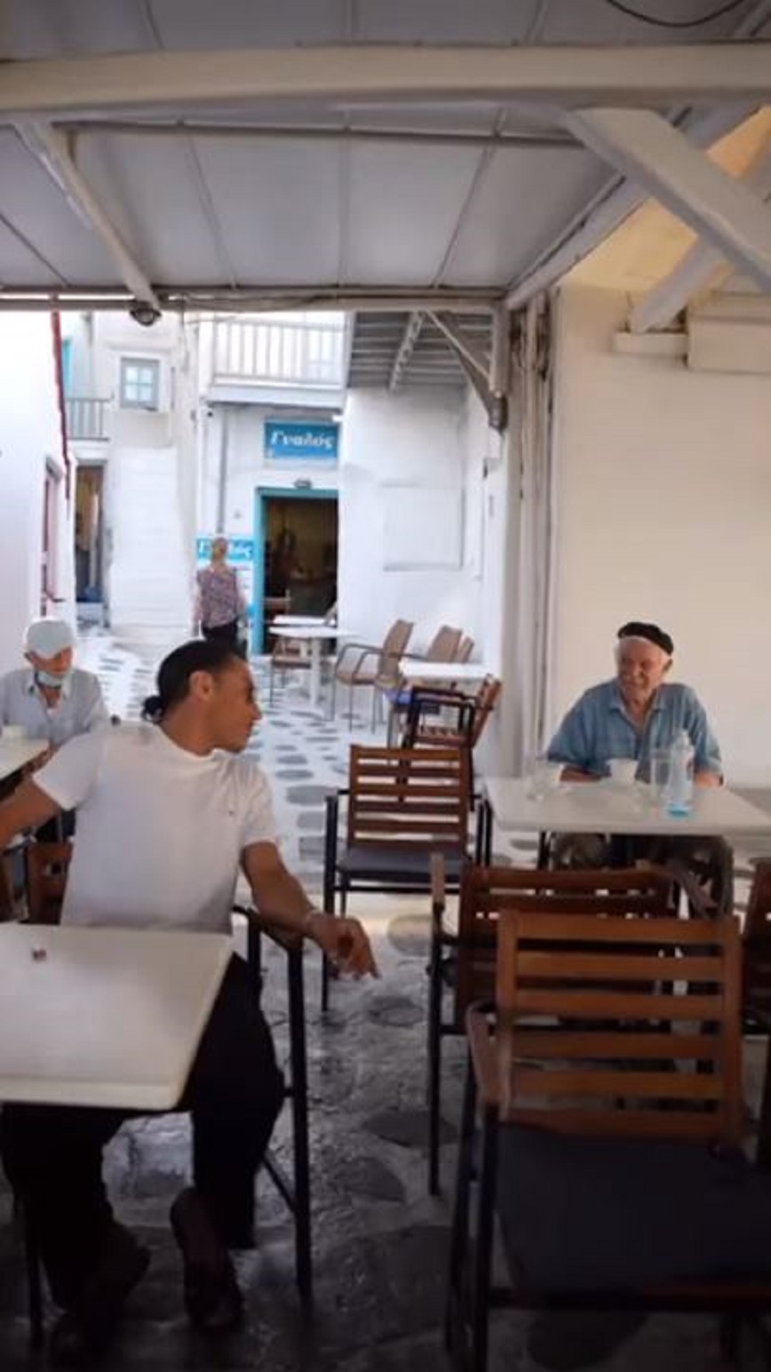 Έπειτα, έκανε ένα story στην ίδια πλατφόρμα και ανέβασε ένα βίντεο, στο οποίο περιηγείται στο νησί και περνάει χρόνο με ντόπιους, ενώ ακούγεται το τραγούδι «Ένα χειμωνιάτικο πρωί».