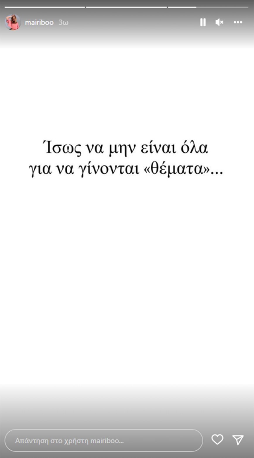 Τη δική της απάντηση στο θέμα που «παίχτηκε» σήμερα στον αέρα της εκπομπής Super Κατερίνα και αφορούσε την ίδια, έδωσε μέσα από τον προσωπικό της λογαριασμό στο Instagram της η Μαίρη Συνατσάκη.