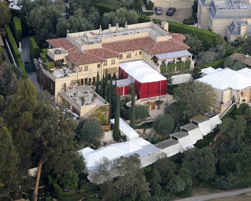 Ο γάμος έγινε στο σπίτι του πατέρα της στη Καλιφόρνια. Ειδικές τέντες στήθηκαν και η πισίνα καλύφθηκε ώστε να γίνει πίστα.