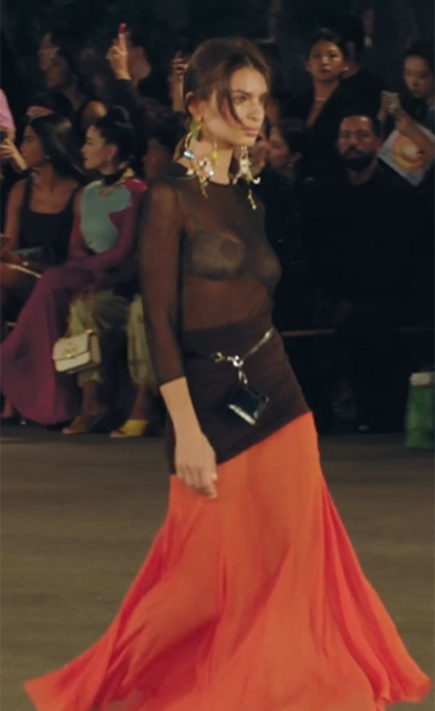 Το διάσημο 31χρονο μοντέλο φόρεσε δημιουργίες της Tory Burch και εμφανίστηκε με μια μακριά αέρινη φούστα σε έντονο πορτοκαλί, ενώ είχε το στήθος της ακάλυπτο.