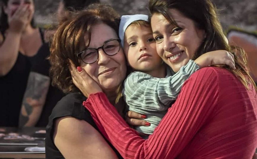 Στην αγκαλιά της είχε και την κόρη της και έδειξε για πρώτη φορά το πρόσωπο της μικρής και μάλιστα απηύθυνε έκκληση σε όσους κοινοποιήσουν τις φωτογραφίες να κάνουν το ίδιο.