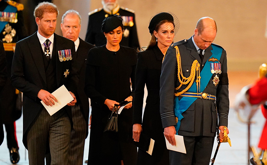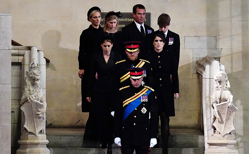 Πιο συγκεκριμένα, μετά την αγρυπνία ο πρίγκιπας της Ουαλίας -και πρώτος στη σειρά διαδοχής για το θρόνο– επέστρεψε στο σπίτι του από το Westminster Hall με τον μεγαλύτερο ξάδελφό του Peter Phillips -ο οποίος τελεί χρέη «ρυθμιστή» μεταξύ των αδελφών σε εκδηλώσεις του Ηνωμένου Βασιλείου από τότε που ήρθαν σε ρήξη, συμπεριλαμβανομένης της κηδείας του Δούκα του Εδιμβούργου πέρυσι. Από την άλλη, ο πρίγκιπας Χάρι έφυγε από το κοινοβούλιο με μια λιμουζίνα με τη Ζάρα Φίλιπς.
