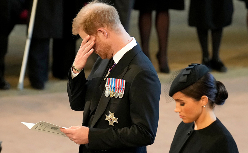 Ο Δούκας του Σάσεξ λέγεται ότι για την επίσημη αγρυπνία δίπλα στο φέρετρο της βασίλισσας Ελισάβετ σκέφτηκε να φορέσει ένα απλό κοστούμι για να αποφύγει την αμηχανία. Ωστόσο, του επετράπη να φορέσει τη στρατιωτική στολή του και με τον αδερφό του στάθηκαν στις δύο άκρες του φέρετρου της γιαγιάς τους. Μαζί τους ήταν τα ξαδέλφια τους Ζάρα Τίνταλ και Πίτερ Φίλιπς, οι πριγκίπισσες Βεατρίκη και Ευγενία, καθώς και η λαίδη Λουίζ Γουίνδσορ και ο αδελφός της υποκόμης Σέβερν.