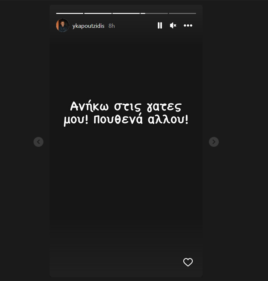 «Ανήκω στις γάτες μου! Πουθενά αλλού!», συνέχισε με ένα δεύτερο story στο Instagram.