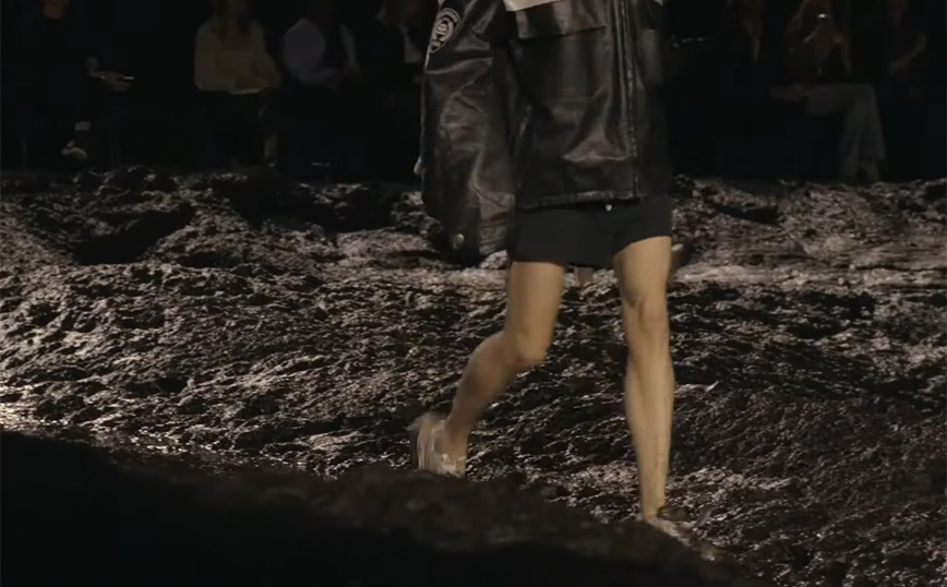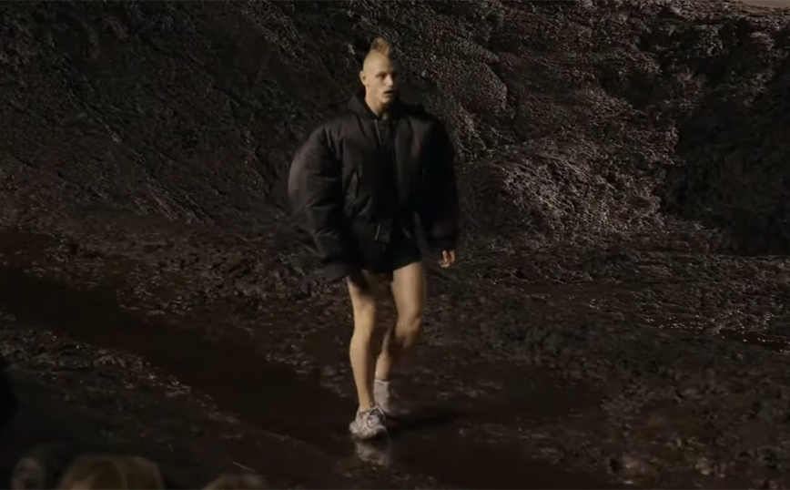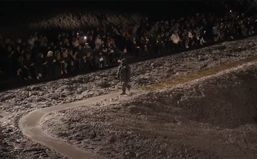 Έχουμε συνηθίσει πλέον στις… ασυνήθιστες επιδείξεις μόδας. Πλέον τα μοντέλα δεν βρίσκονται απλά πάνω στην πασαρέλα παρουσιάζοντας τα ρούχα τους κάθε μόδιστρου αλλά φτιάχνουν ολόκληρες παραστάσεις. Ένα ιδιαίτερο fashion show παρουσίασε και την Κυριακή, στην Εβδομάδα Μόδας στο Παρίσι, όπου ο οίκος Balenciaga αποφάσισε να στρώσει την πασαρέλα με… λάσπη και τα μοντέλα να περπατήσουν σε αυτή. Αυτός που άνοιξε την επίδειξη στο Parc des Expositions ήταν ο Κάνιε Γουέστ, σε μια συλλογή αφιερωμένη στον ατομικισμό, φορώντας ένα μαύρο leather σύνολο. Το μήνυμα ήταν να ψάχνεις για την αλήθεια και να είσαι προσγειωμένος.