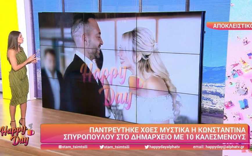 Η Κωνσταντίνα Σπυροπούλου και ο Βασίλης Σταθοκωστόπουλος, που περιμένουν το πρώτο τους παιδί, παντρεύτηκαν μυστικά με πολιτικό γάμο, μέσα στο Σαββατοκύριακο. Σύμφωνα με το «Happy Day», οι καλεσμένοι ήταν μόλις 10 καθώς το ζευγάρι ήθελε να κρατηθεί απόλυτη μυστικότητα σε αυτό τους το βήμα και να το ζήσουν σε στενό οικογενειακό κύκλο.