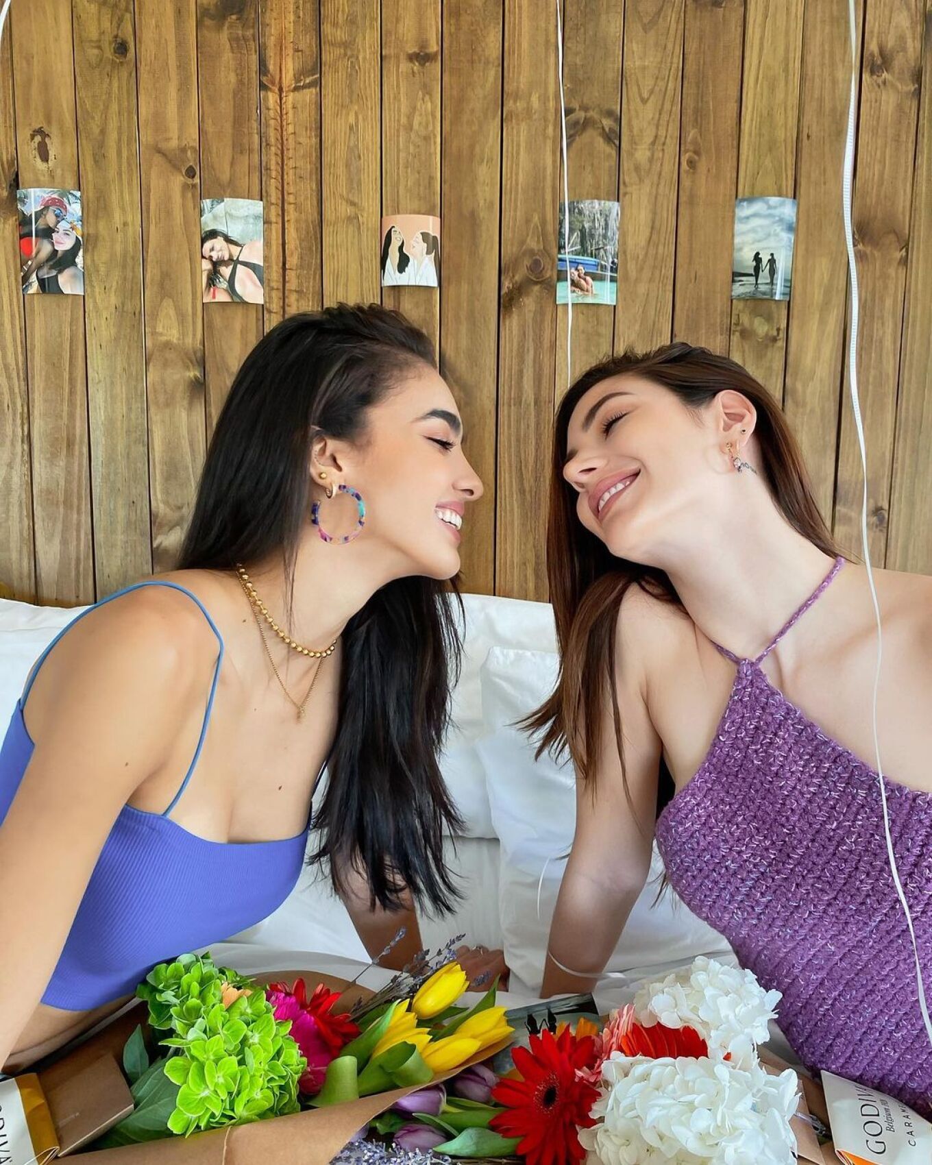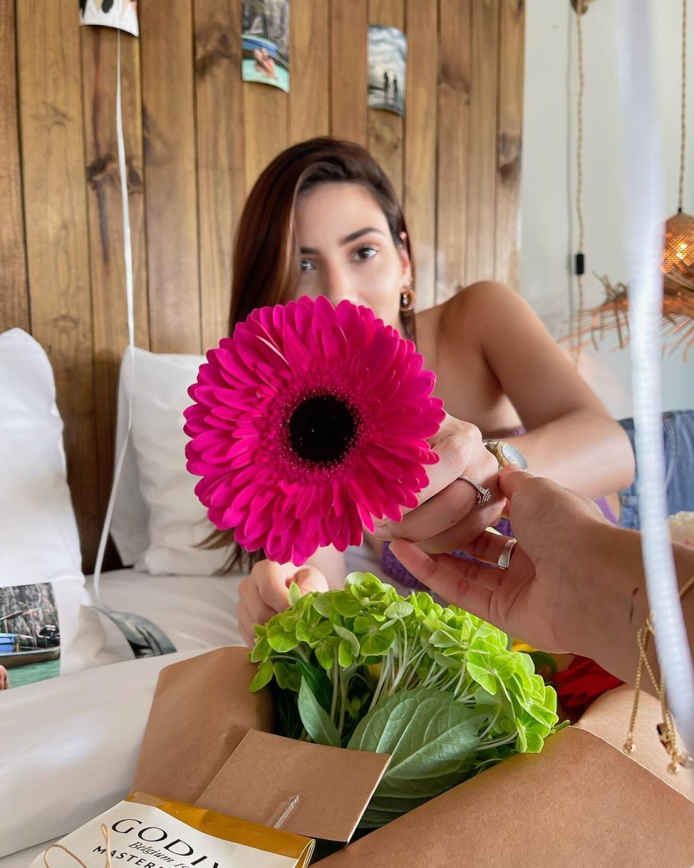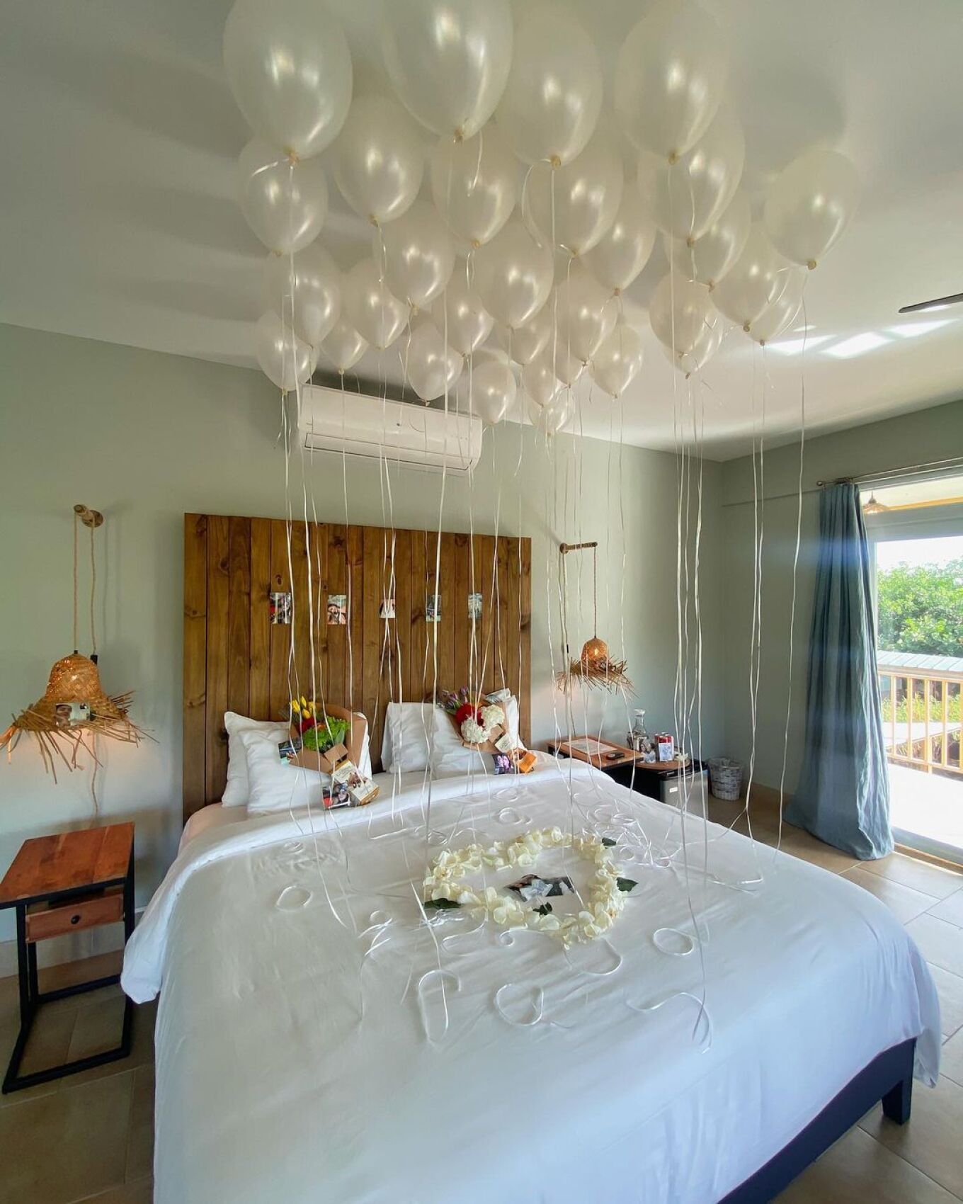 Μέσα από το προφίλ της στο Instagram, η Μαριάνα Βαρελά μοιράστηκε με τους σχεδόν 300.000 ακολούθους της, τρυφερά στιγμιότυπα από το πρώτο της ταξίδι με τη σύζυγό της. Σε μία από τις κοινές τους φωτογραφίες, οι δυο τους ανταλλάσσουν ένα φιλί, ενώ σε άλλη εικόνα δείχνει το κρεβάτι τους που είναι γεμάτο μπαλόνια.
