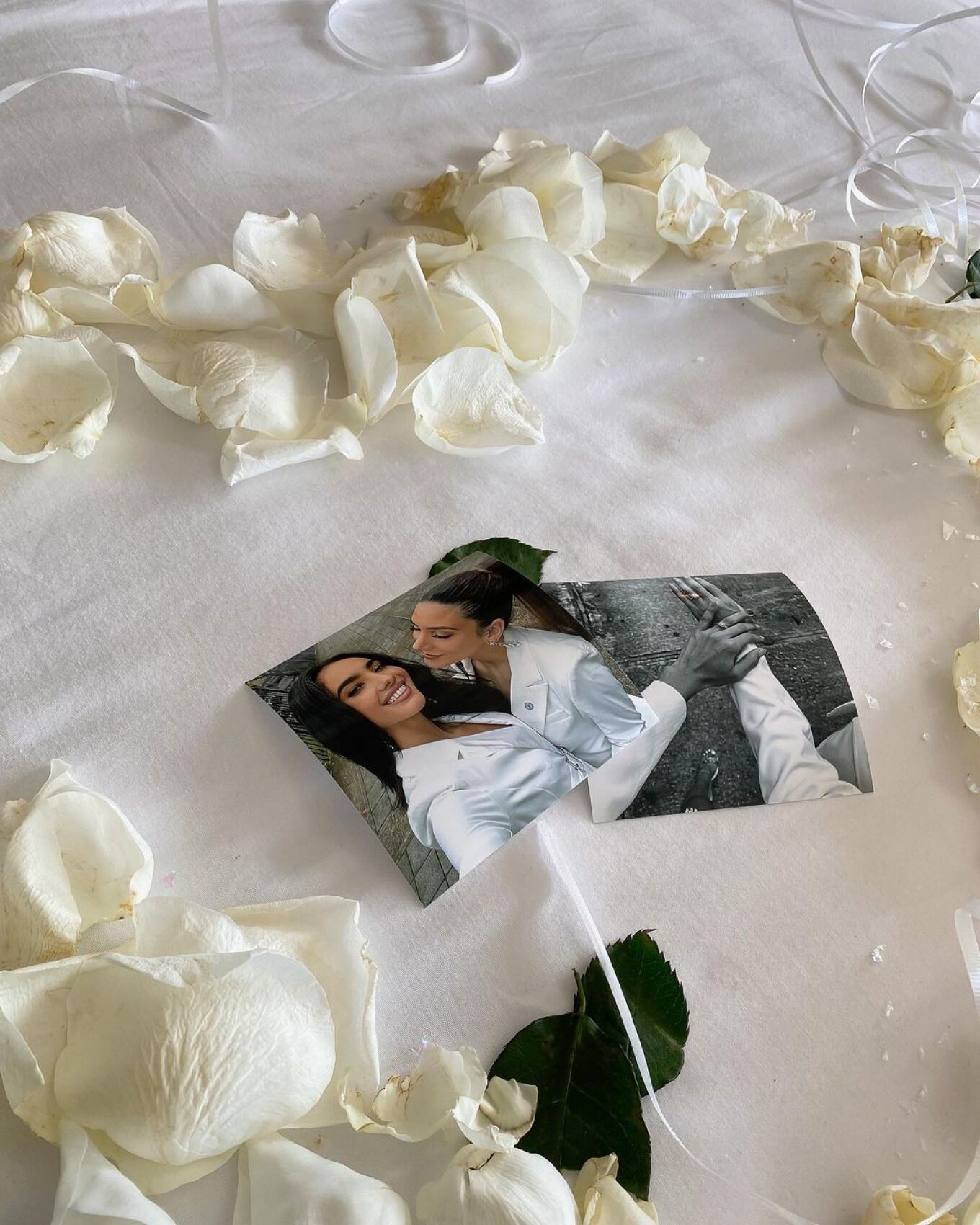 Οι νεόνυμφες δείχνουν την πιο ρομαντική τους πλευρά. Καρδιές στην παραλία με τα αρχικά τους, και ροδοπέταλα που γράφουν «Σ’ αγαπώ» στα ισπανικά είναι μερικά από τα στιγμιότυπα που επέλεξαν να μοιραστούν με τους followers τους. Η Βαρελά, 26, και η Βαλεντίν, 22, έδειξαν πως έγινε η πρόταση γάμου με γιγαντιαία μπαλόνια που γράφουν «Θα με παντρευτείς;».