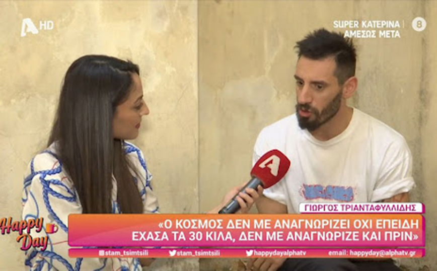 «Ξεκίνησε με αφορμή μία επαγγελματική υποχρέωση. Έχασα 30 κιλά σε 7 μήνες μόνο με διατροφή και γυμναστική. Ήταν και για θεατρική δουλειά αλλά πρωτίστως ήταν για τη σειρά της ΕΡΤ» εξομολογήθηκε ο ηθοποιός για την τεράστια αλλαγή στην εξωτερική του εμφάνιση.