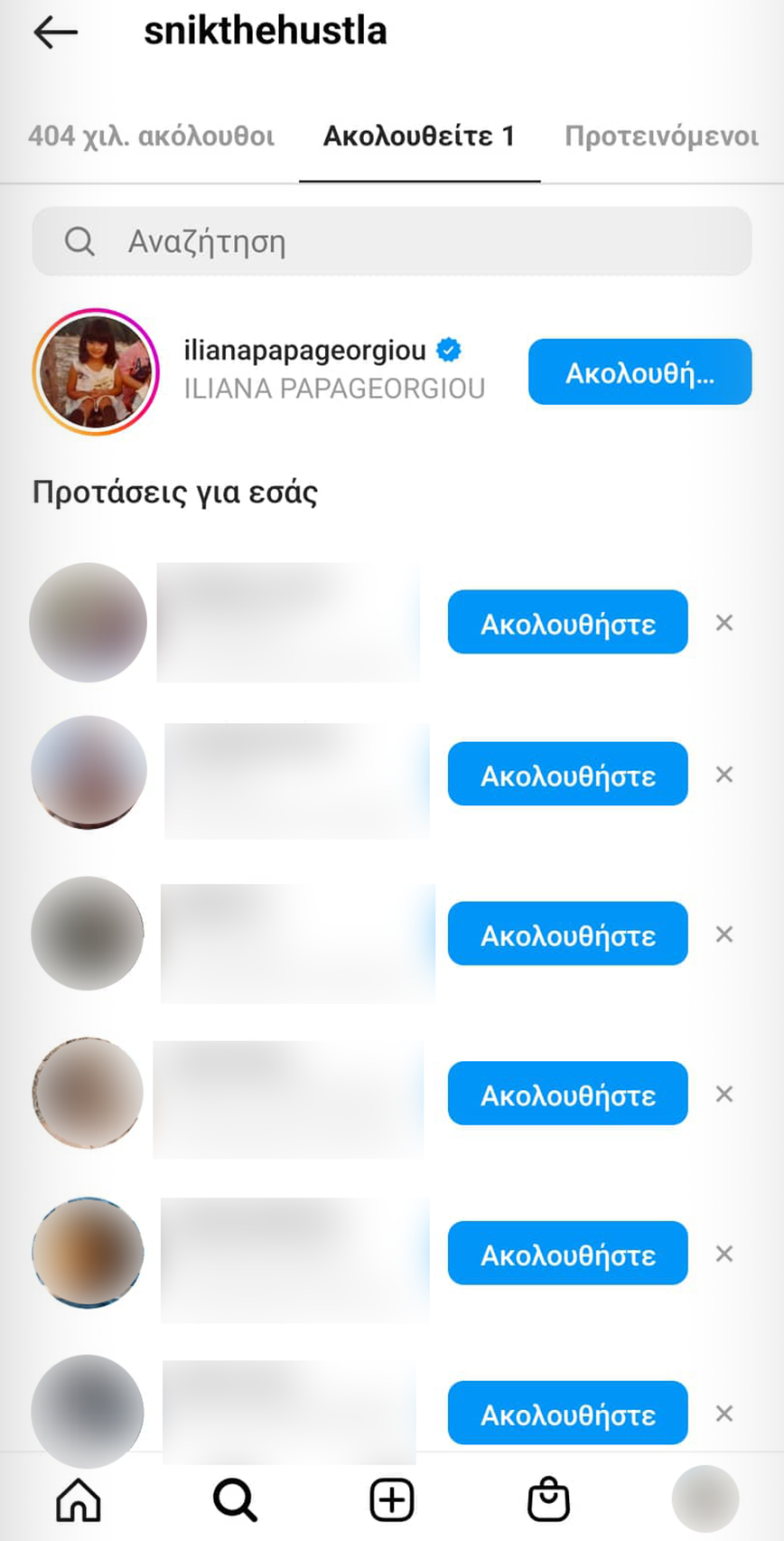 Αν και δεν ακολουθεί την πρώην σύντροφό του, ο τράπερ φαίνεται πως ακολούθησε εκ νέου το προφίλ της Ηλιάνας Παπαγεωργίου, με την οποία υπήρξαν ζευγάρι. Μάλιστα, ο λογαριασμός του μοντέλου είναι ο μοναδικός που ακολουθεί στο Instagram ο Snik.