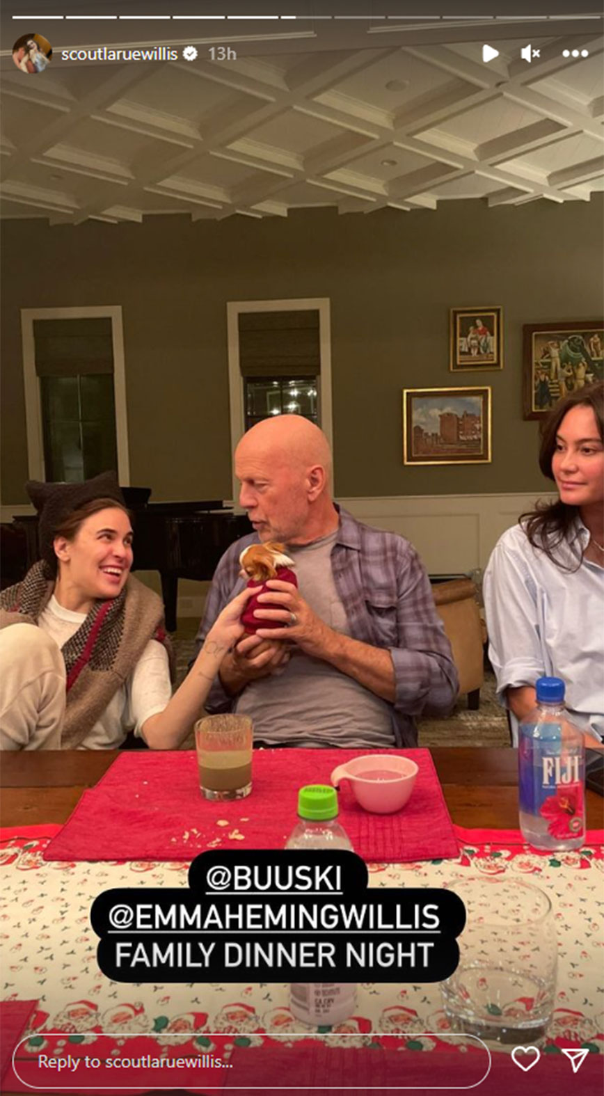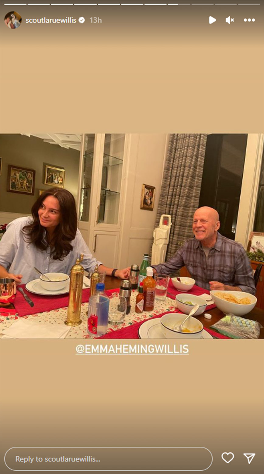 Πριν λίγες ώρες η κόρη του, Σκάουτ Γουίλις, δημοσίευσε στον προσωπικό της λογαριασμό στο Instagram δυο φωτογραφίες του πατέρα της με την σύζυγό του, Έμα Χέμινγκ.
