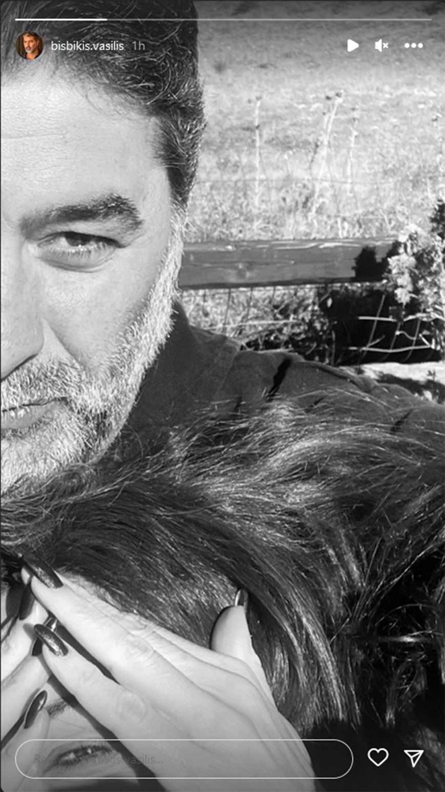 Αυτή τη φορά, ο Βασίλης Μπισμπίκης ανέβασε μία φωτογραφία με τη Δέσποινα Βανδή. Στο story που ανέβασε, ο ηθοποιός κοιτά τον φακό, ενώ κρατά στην αγκαλιά του τη Δέσποινα Βανδή, η οποία κρύβει το πρόσωπό της με τα χέρια της.