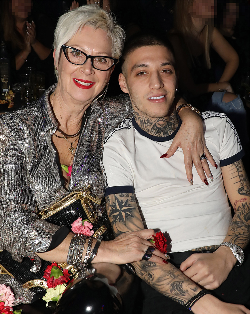 Ο φωτογραφικός φακός απαθανάτισε τον τράπερ με τη μαμά του και ο Trannos πέταξε γαρύφαλλα στη σκηνή ενώ σηκώθηκε να τραγουδήσει.