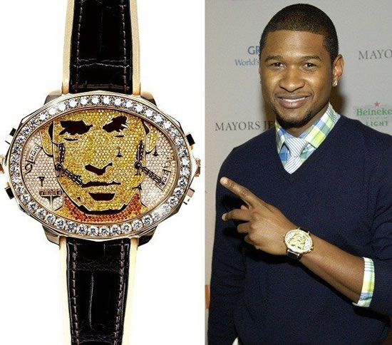 Αυτό το ρολόι είναι ακόμα πιο ειδική έκδοση. Ο Usher που κάνει συλλογή από ρολόγια, ζήτησε από γνωστό κοσμηματοπωλείο της Νέας Υόρκης να του φτιάξει ένα ρολόι με τη προσωπογραφία του από διαμάντια.