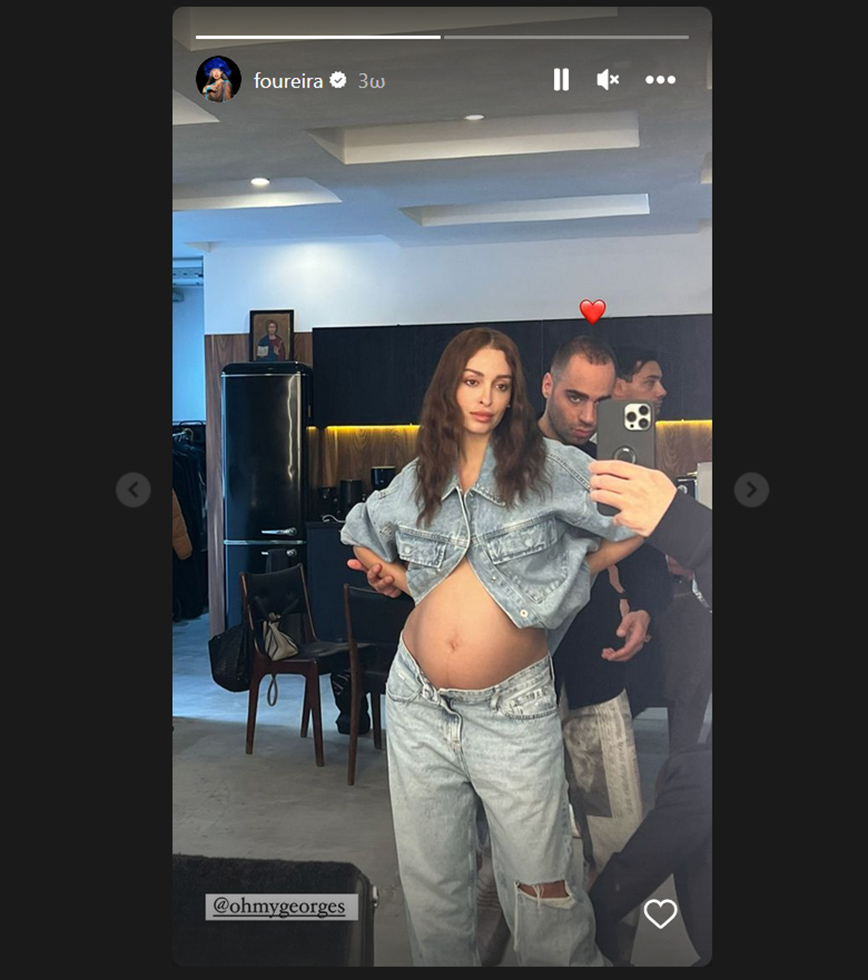 Λίγο πριν υποδεχτεί στην αγκαλιά της το μωρό της, η Ελένη Φουρέιρα ποζάρει φορώντας ένα τζιν σύνολο το οποίο αναδεικνύει τη φουσκωμένη κοιλίτσα της.